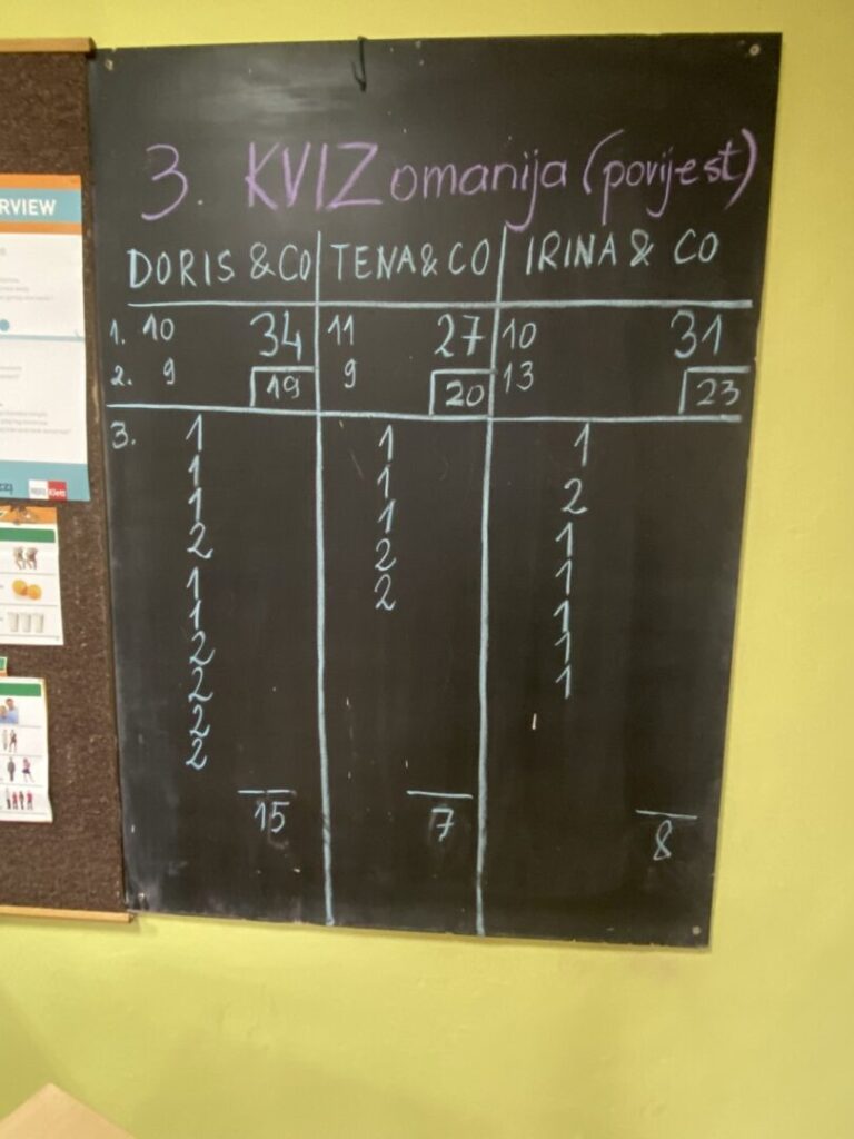 25. studenog učiteljica Vedrana Frlan vodila je 3. KVIZomaniju, a učitelj povijesti Igor Brčić osmislio je niz pitanja vezanih uz najznačajnije hrvatske i svjetske povijesne trenutke. Naše stalne KVIZekipe bile su i ovaj put uspješne u odgovorima i pokazale svoju snalažljivost, ali i znanje o nekim davnim vremenima.