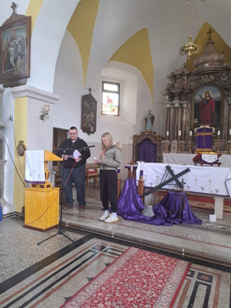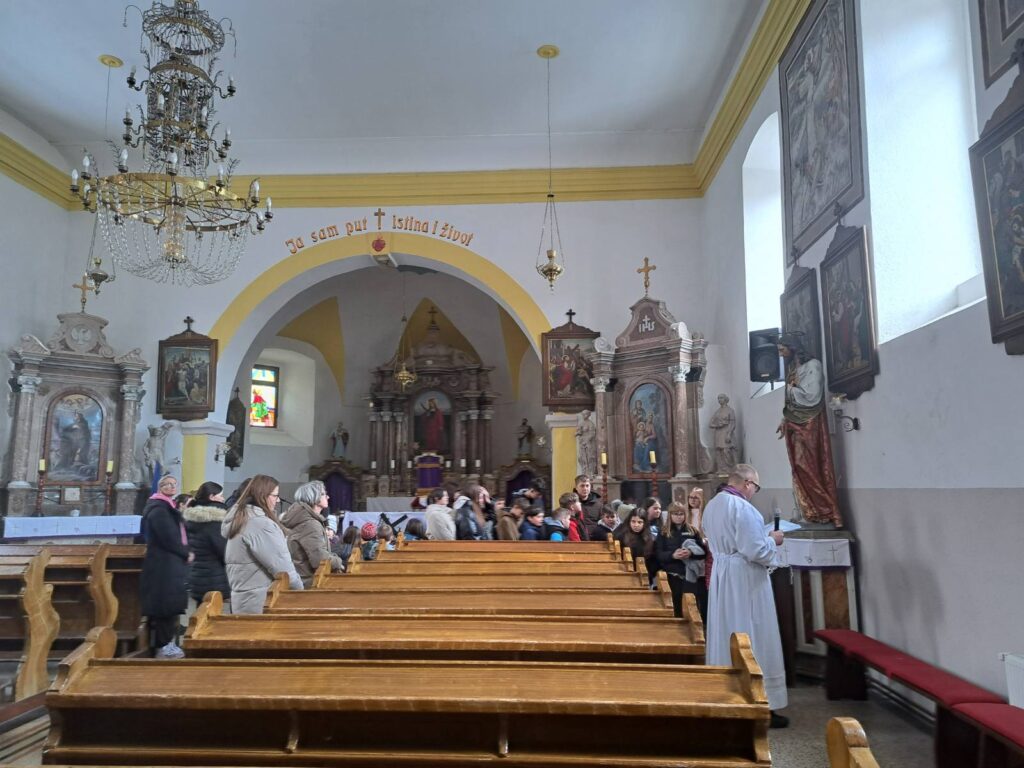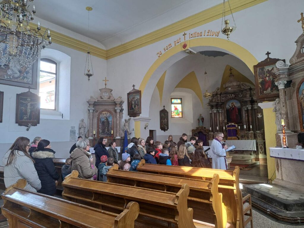 Velečasni Kristijan Pandl vodio je u četvrtak 19. ožujka križni put za učenike koji je prilagodio njihovom razumijevanju i svakodnevnom životu te ih upućivao na vrijednosti koja djeca mogu prepoznati, a to su prijateljstvo, pomoć drugima i opraštanje. Uz svaku postaju naši su učenici, uz podršku vjeroučitelja Mate Perkovića, čitali tekstove kojima su isticali kako je Isus i u teškim trenucima pokazivao ljubav prema drugima i naučio nas da prava snaga nije u moći, nego u dobroti i vjernosti prijateljima.