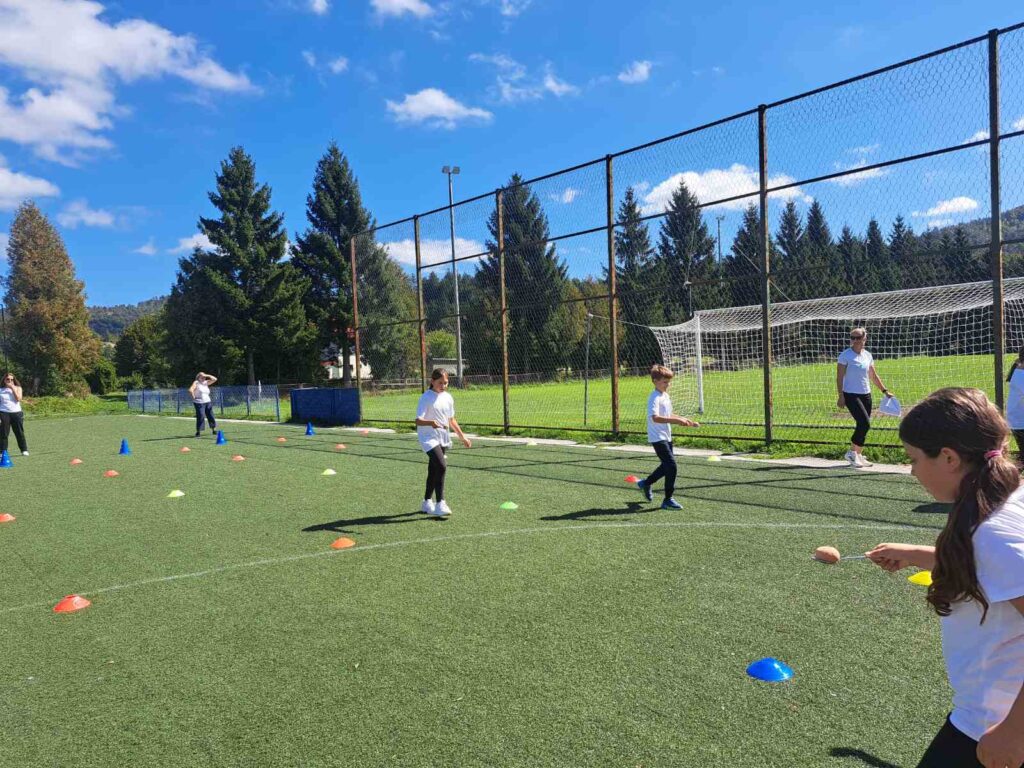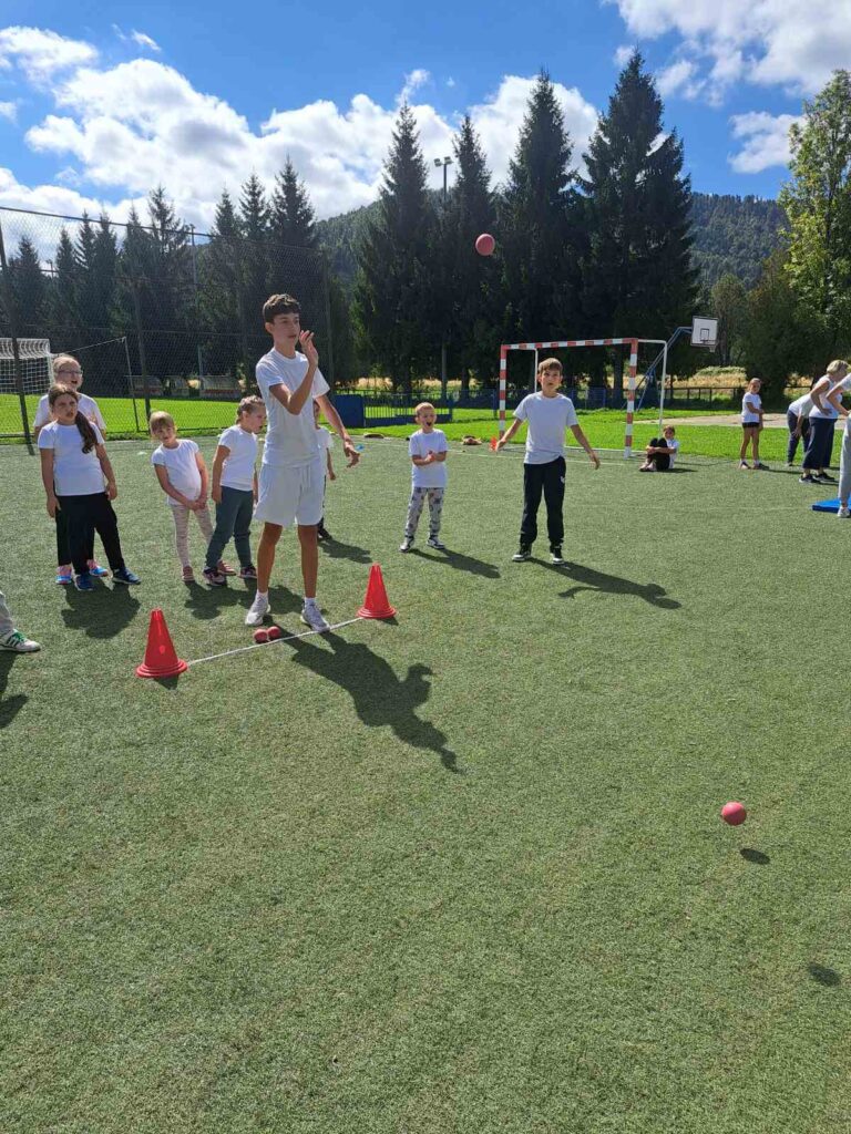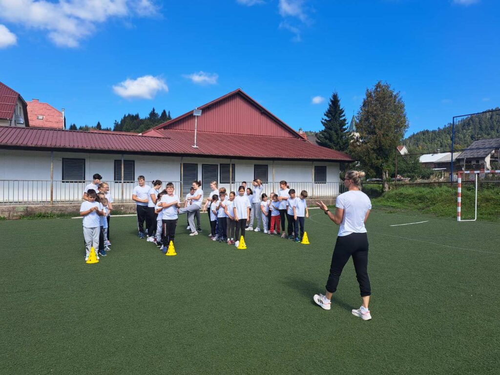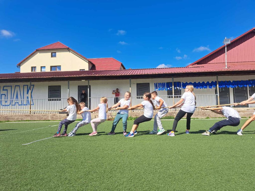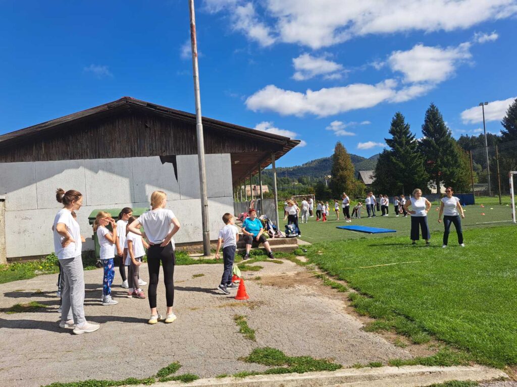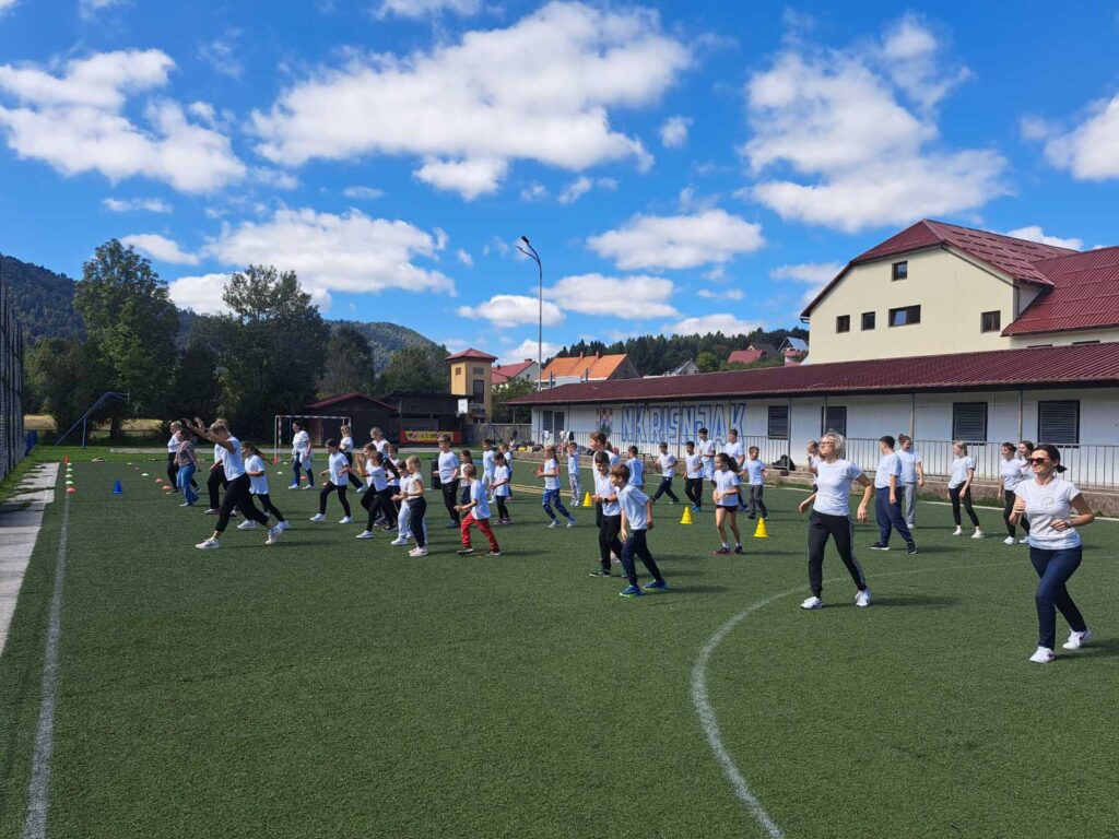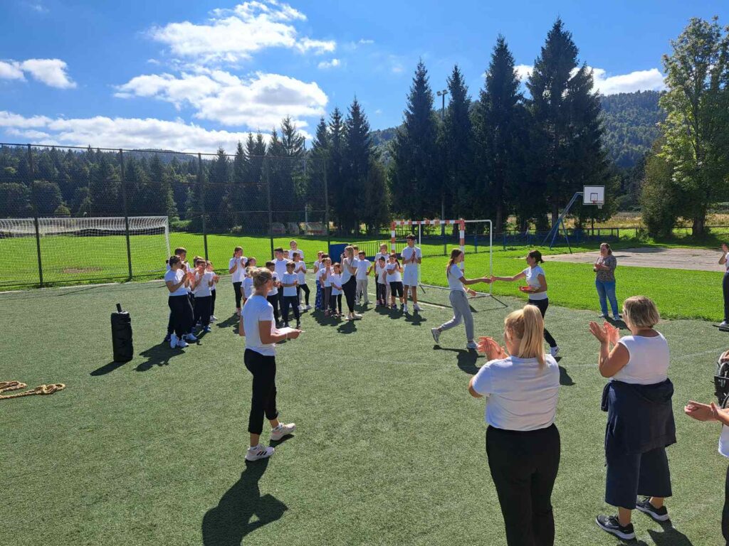 Nakon zajedničkog zagrijavanja svih učenika i učitelja, podijeljeni u 4 natjecateljska tima, skakali su u vrećama, potezali konop, trčali s jajima u žlici, bacali kamen s ramena, skakali u dalj, gađali lopticama koš na tlu, pokušavali lopticom srušiti plastične boce napunjene vodom…