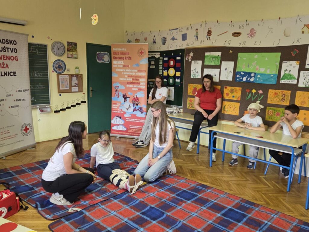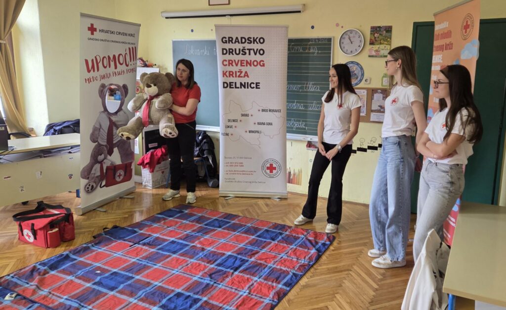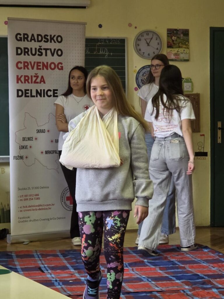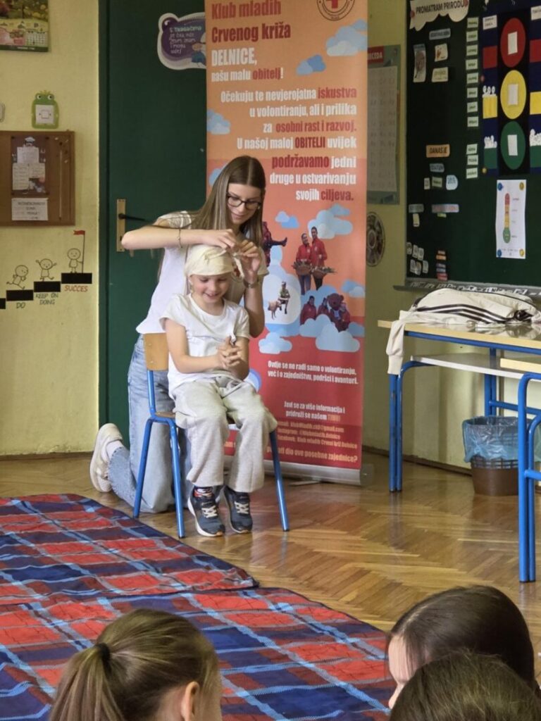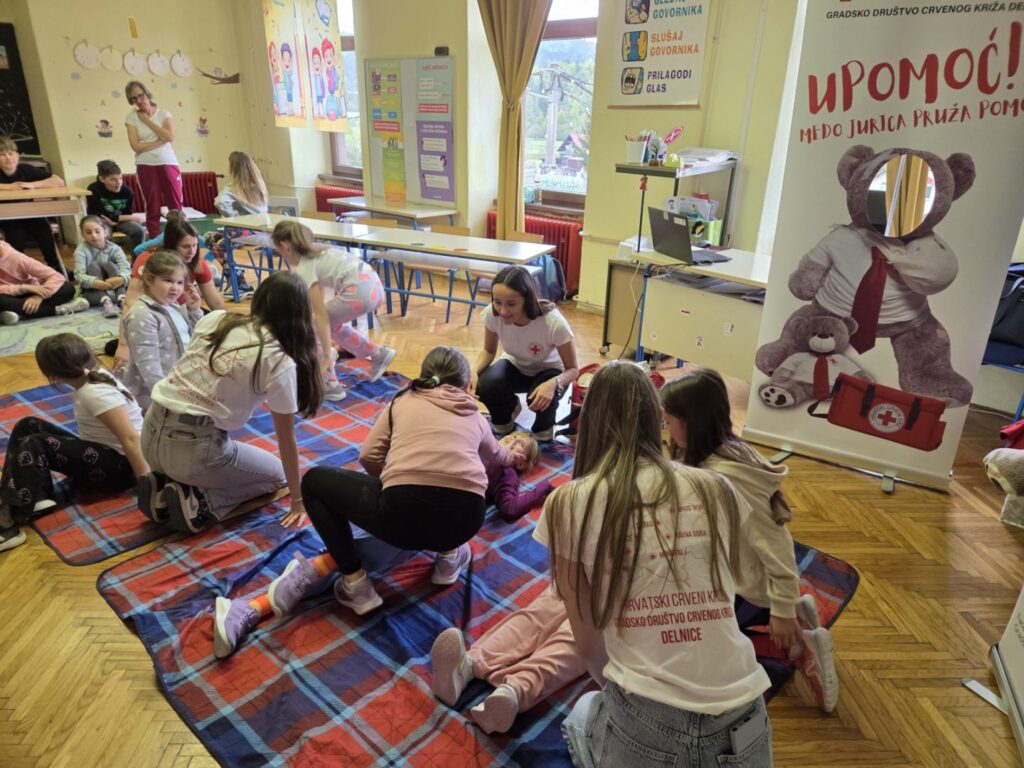 29. travnja volonterke Lana, Barbara, Klara i Marina iz Gradskog društva Crvenog križa iz Delnica na edukativan su način pokazale učenicima kako se previjaju rane, zbrinjavaju prijelomi ruku i nogu, saniraju ozljede glave i postavlja osoba u bočni položaj. Uz medu Juricu učenici su kroz igru, veselje i smijeh savladali važne vještine koje život znače!