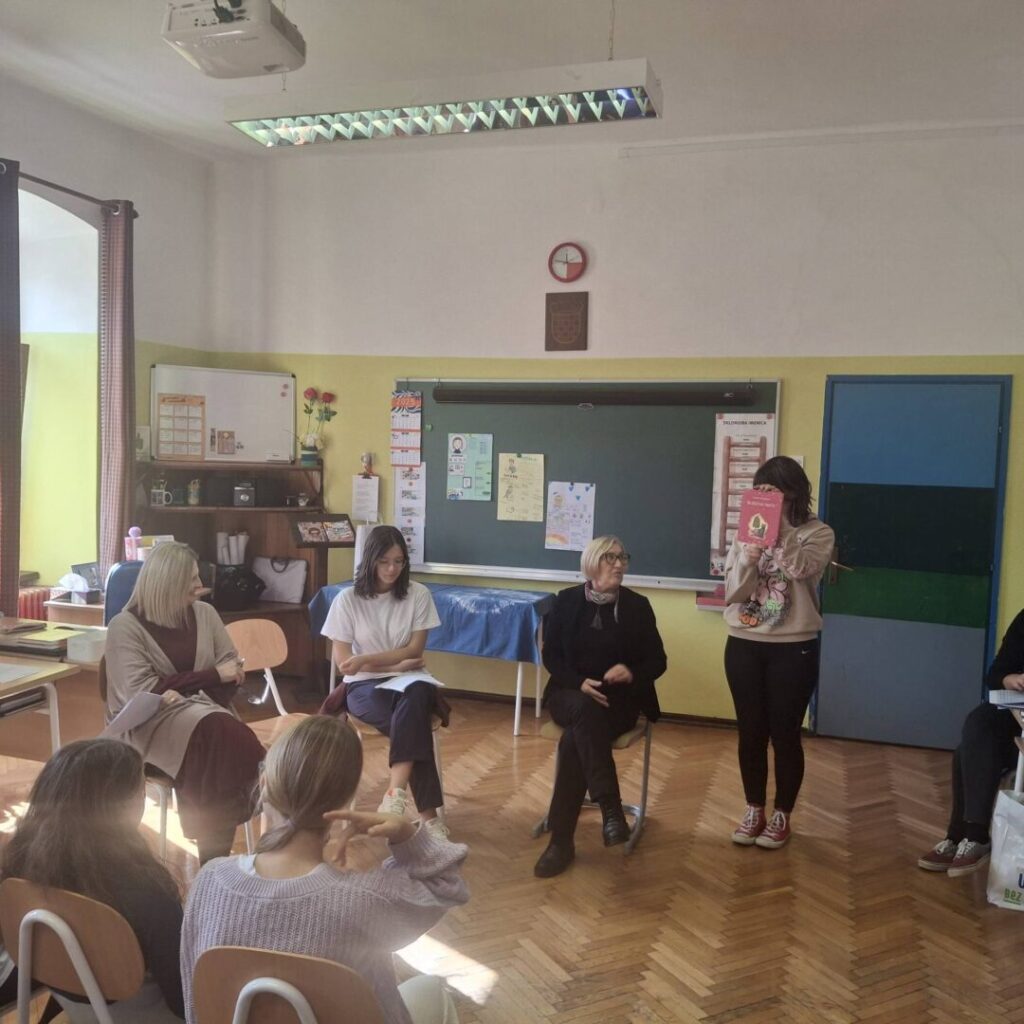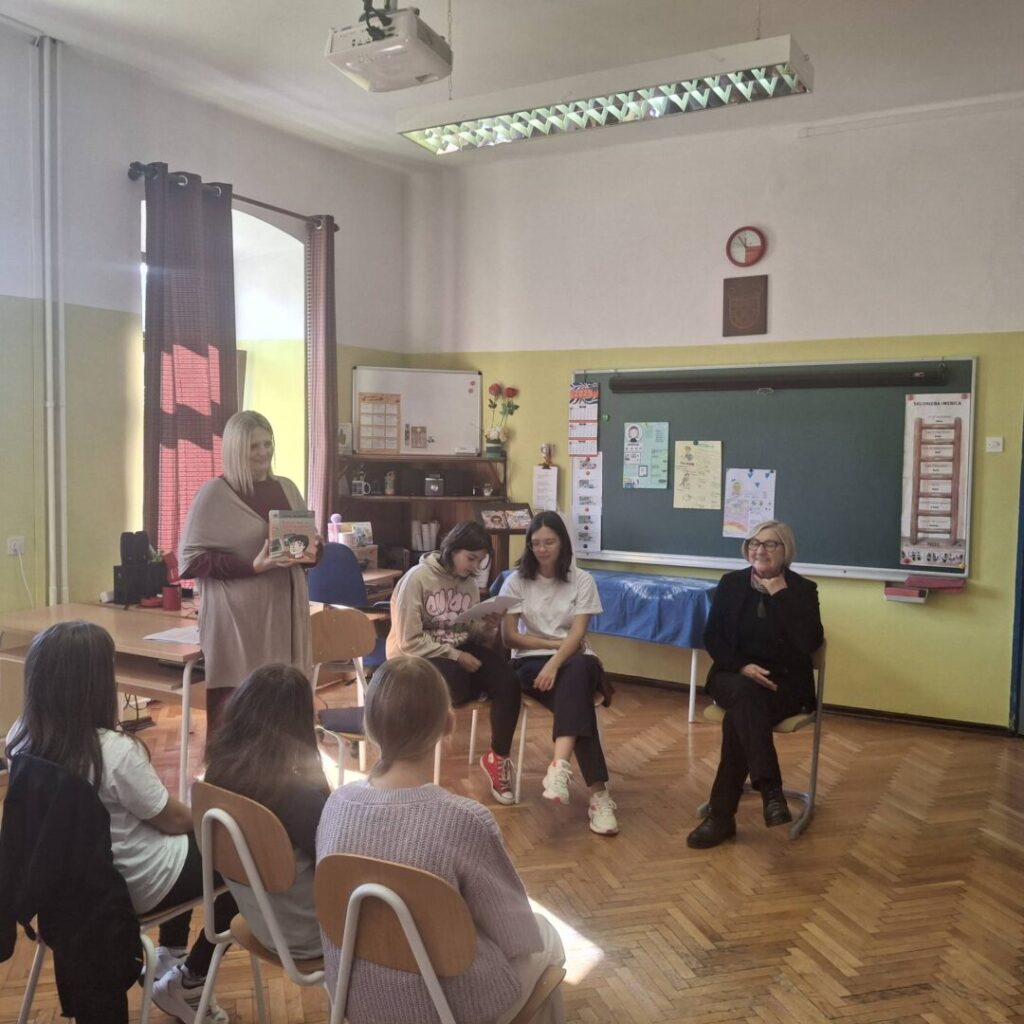 Uz Mjesec hrvatske knjige u suradnji s Izdavačkom kućom Naklada Ljevak 27. listopada organizirali smo susret sa spisateljicom za djecu i mlade Jasminkom Tihi-Stepanić. Kroz razgovor koji su vodile Irina, Doris i učiteljica Andreja saznali smo da su njeni romani “Imaš fejs” i “Bacit ću ti kompjutor kroz prozor” omiljeni među mladim čitateljima jer progovaraju o problemima koje mogu prouzročiti društvene mreže. Roman “Ljeto na jezeru Čiču” njen je najnagrađivaniji roman i to je istinita, ali nesretna priča. U zbirci pripovjedaka “Božićna priča” mnogo je autobiografskih doživljaja. Spisateljica je pričala i o suvremenim temama, poremećajima u prehrani i problemima s mentalnim zdravljem mladih o kojima progovara u romanima “Gdje je Beata?”, “Moja neprijateljica Ana” i posljednjem romanu “Djevojka u sjeni tuge”. Ugodno druženje završili smo razgovarom o čaroliji pisanja i detaljima stvaranja teksta te porukom svim učenicima da je čitanje radost.