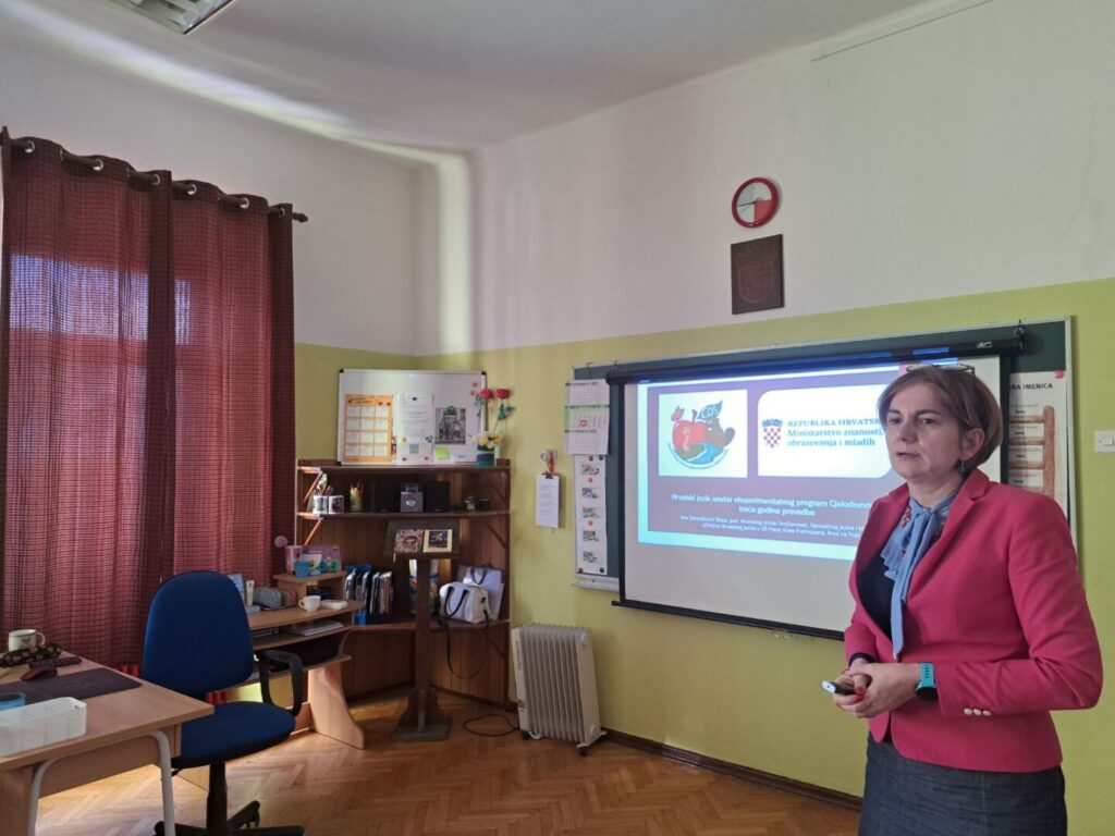 Stručni skup za učiteljice Hrvatskoga jezika u osnovnim školama Gorskoga kotara održan je 18. veljače 2026. u našoj školi. Voditeljica Skupa Andreja Marković i učiteljica Manuela Valenčić iz Vrbovskog podsjetile su svojim predavanjem i radionicom da je pisanje rezultat kontinuiranog učenja i uvježbavanja. Učiteljice su analizirale zadane opisnike (kriterije) za vrednovanje pisanoga rada – komentar i vrednovale učeničke radove na temelju opisnika. Učiteljica Jasna šepac iz Brod Moravica prikazala je rezultate školskog projekta značajne kulturno-povijesne obljetnice: 1100 godina krunidbe kralja Tomislava i počecima hrvatske države te srednjovjekovne pismenosti, a učiteljica Ana Derenčinović Shala upoznale nas je s detaljima nacionalnog programa Cjelodnevna škola unutar predmeta Hrvatski jezik. Skup u trajanju od 4 sata bio je prilika za druženje goranskih učiteljica, za razmjenu iskustava i razgovora o primjerima dobre prakse.